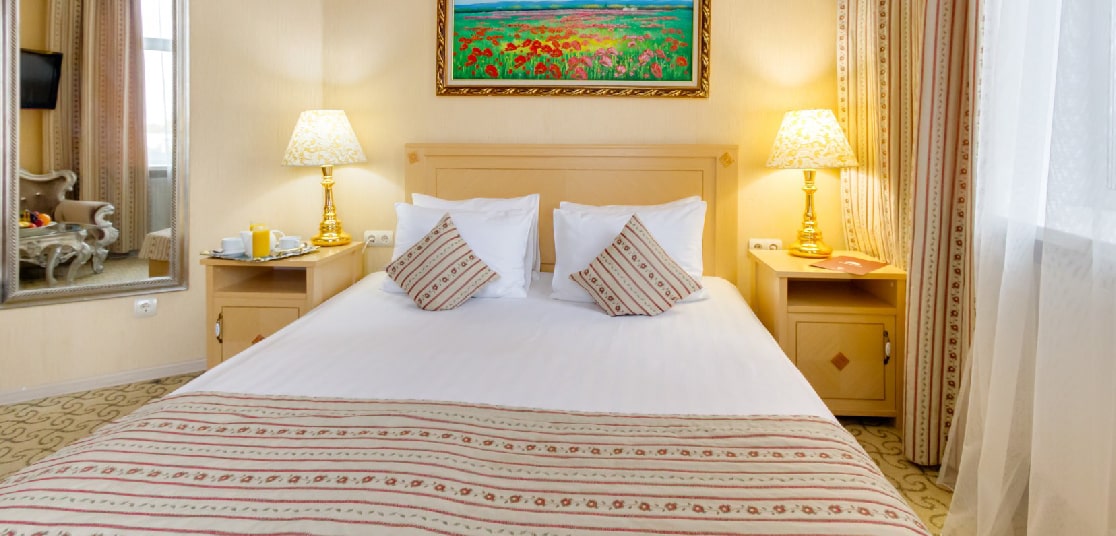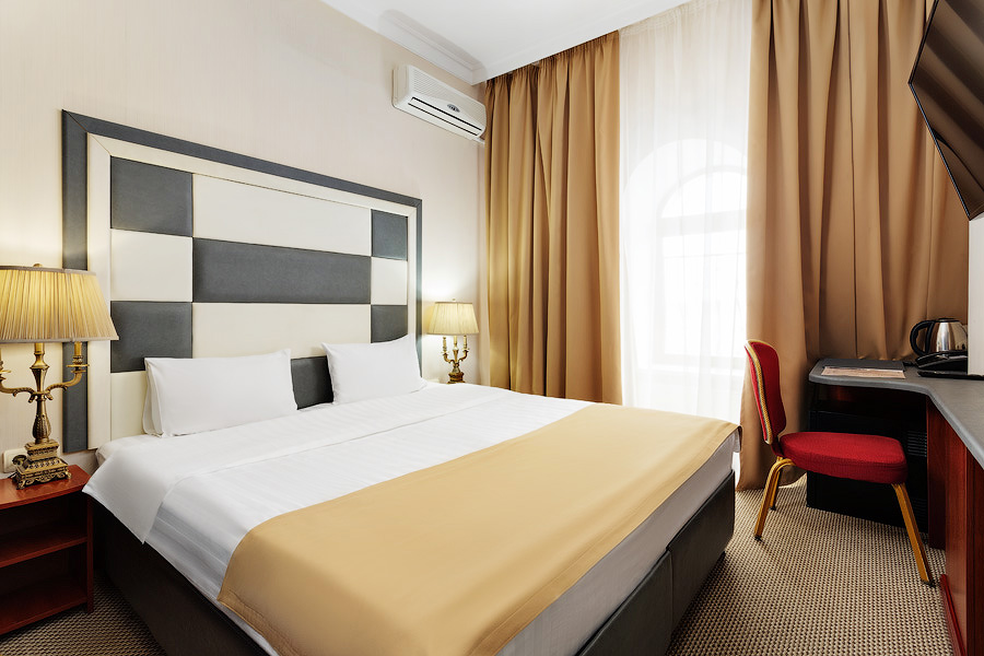 Общая площадь — от 20 м. кв. Интерьер выполнен в светлых тонах. В распоряжении гостей: спутниковое телевидение, Wi-Fi, мини-бар, стул, письменный / журнальный стол, шкаф и прикроватные тумбы, зеркало. Ванная комната европейского стандарта с душем или ванной, выполнена в классическом стиле.